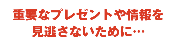 今回の特典に限らず、今後お送りするプレゼントや情報を確実に受け取ってもらうためにも